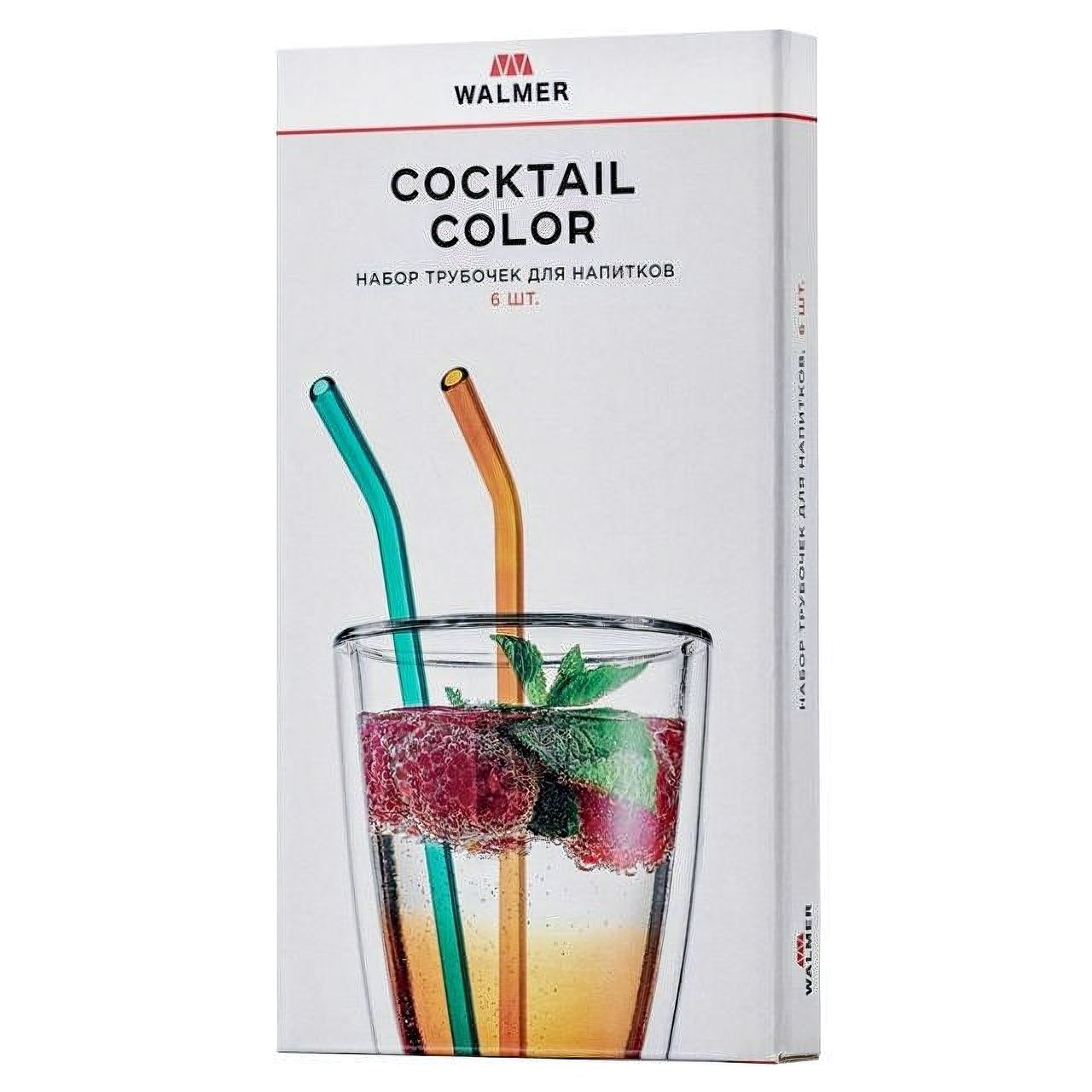Трубочки для напитков WALMER Cocktail Color 6шт стекло термостойкое интересное: