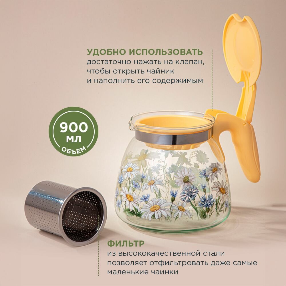 Чайник заварочный Agness с фильтром "Ромашки" 900 мл интересное: