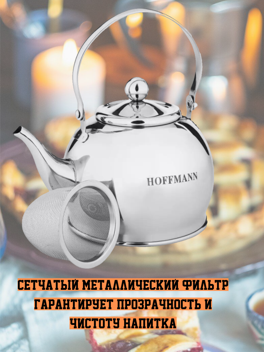 Заварочный чайник Hoffmann 1000 мл с ситечком для чая и кофе,нержавеющая сталь интересное: