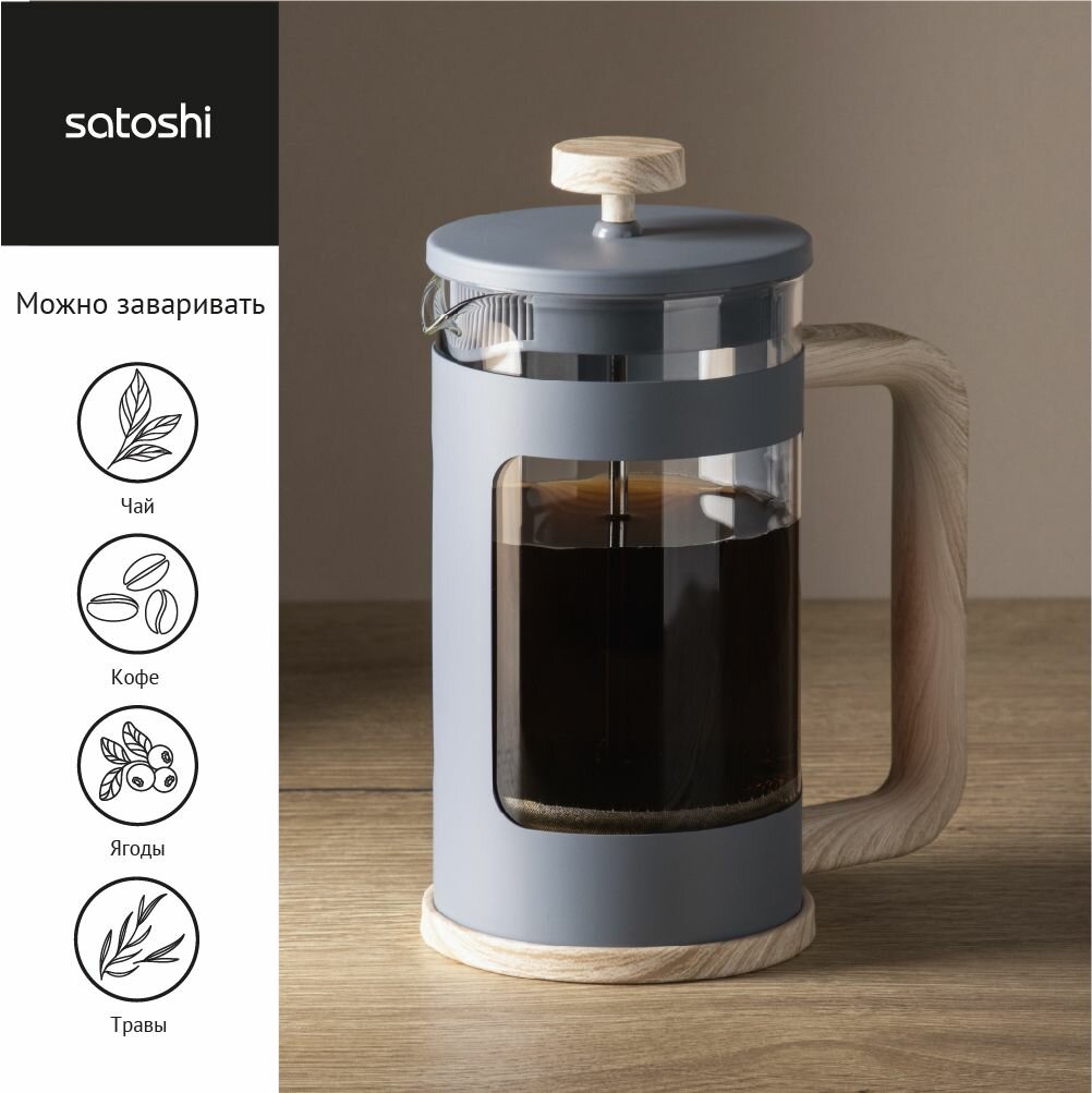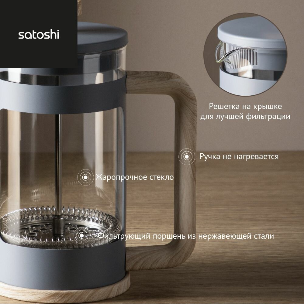Френч-пресс 1000 мл SATOSHI Шарлеруа, жаропрочное стекло, заварочный чайник для кофе и чая интересное: