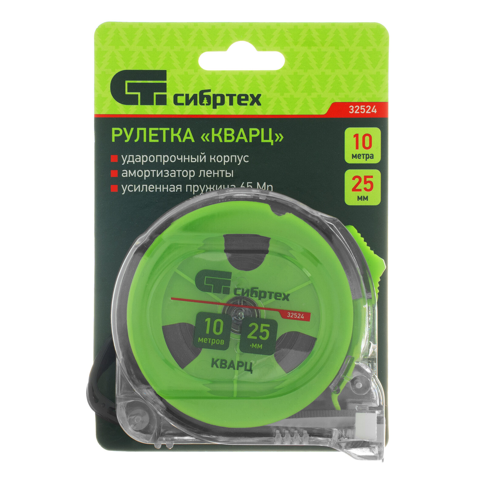 Рулетка Сибртех Кварц прозрачный корпус, амортизатор, 10 м х 25 мм 32524 интересное: