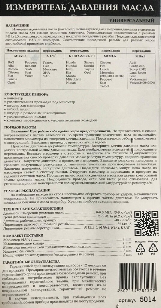Универсальный масломер для иномарки+ВАЗ Вымпел ММ-14 интересное: