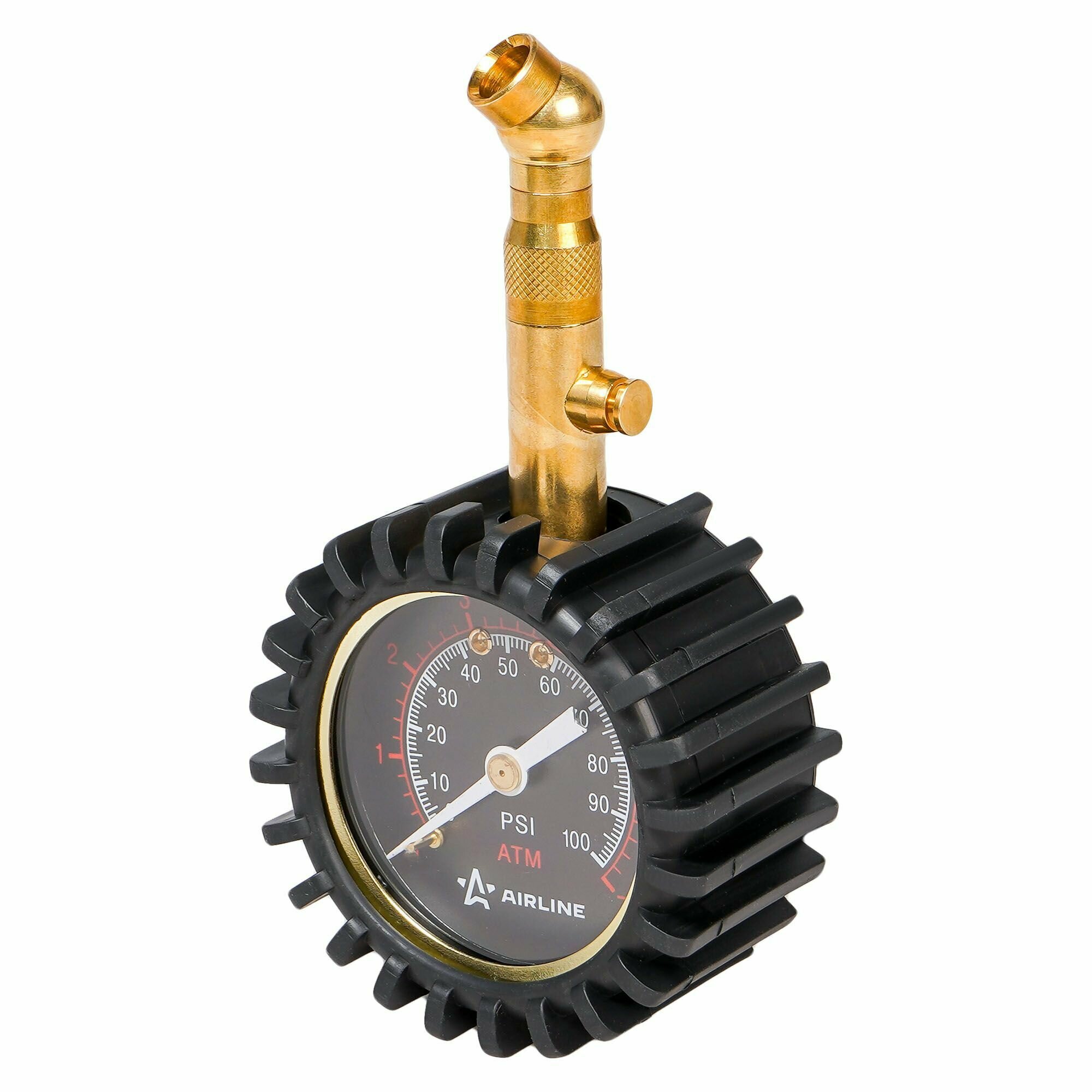 Манометр стрелочный металл. 7АТМ диам. 50мм обрезин. с клапаном сброса PRO AIRLINE AEAS002, 1 шт. интересное: