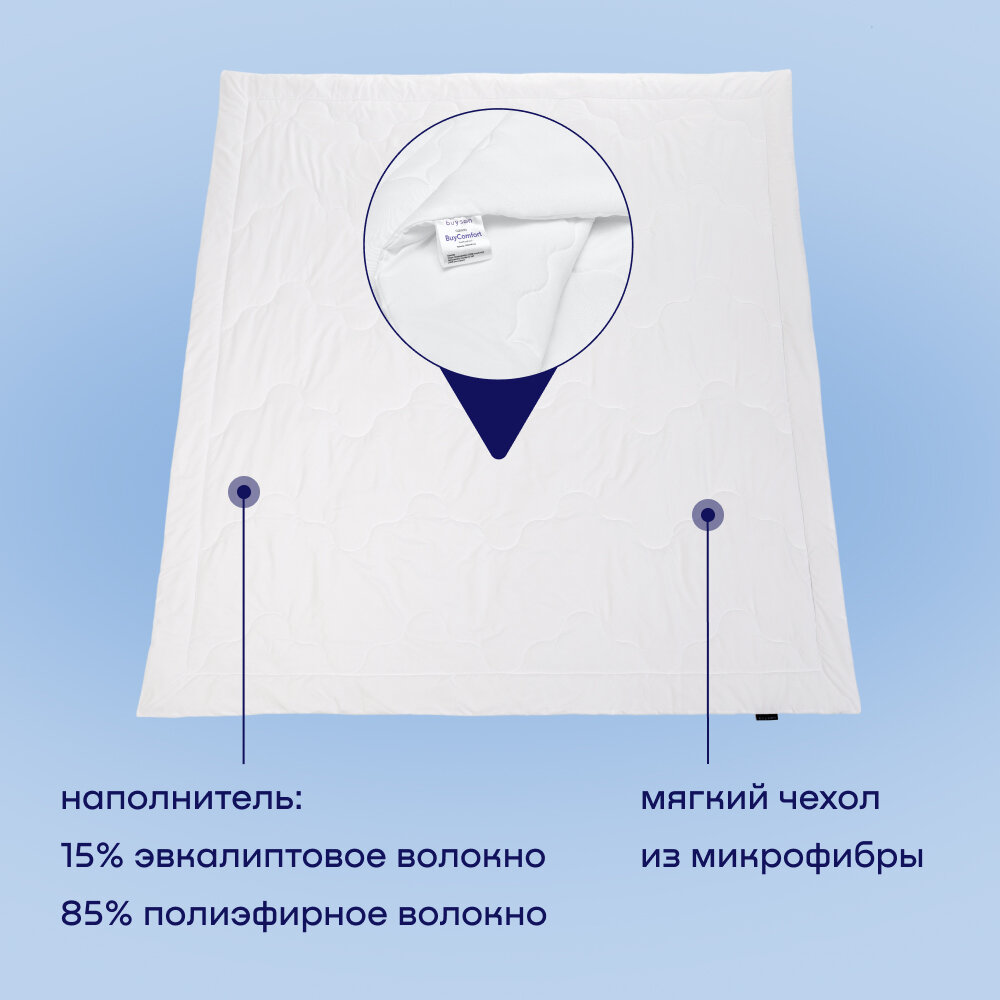 Одеяло buyson BuyComfort, 205х140 см, 1,5 спальное, всесезонное, с наполнителем эвкалиптовое волокно и полиэфир