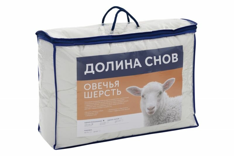 Одеяло овечья шерсть 2-спальное (172х205 см) Долина снов "Овечья шерсть", чехол - микрофибра (100% п/э), Ecotex