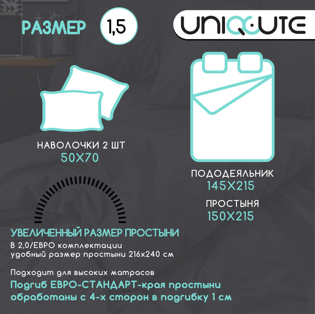 Постельное белье Uniqcute 1,5-спальное, Поплин, наволочки 50х70 см, MOCCA
