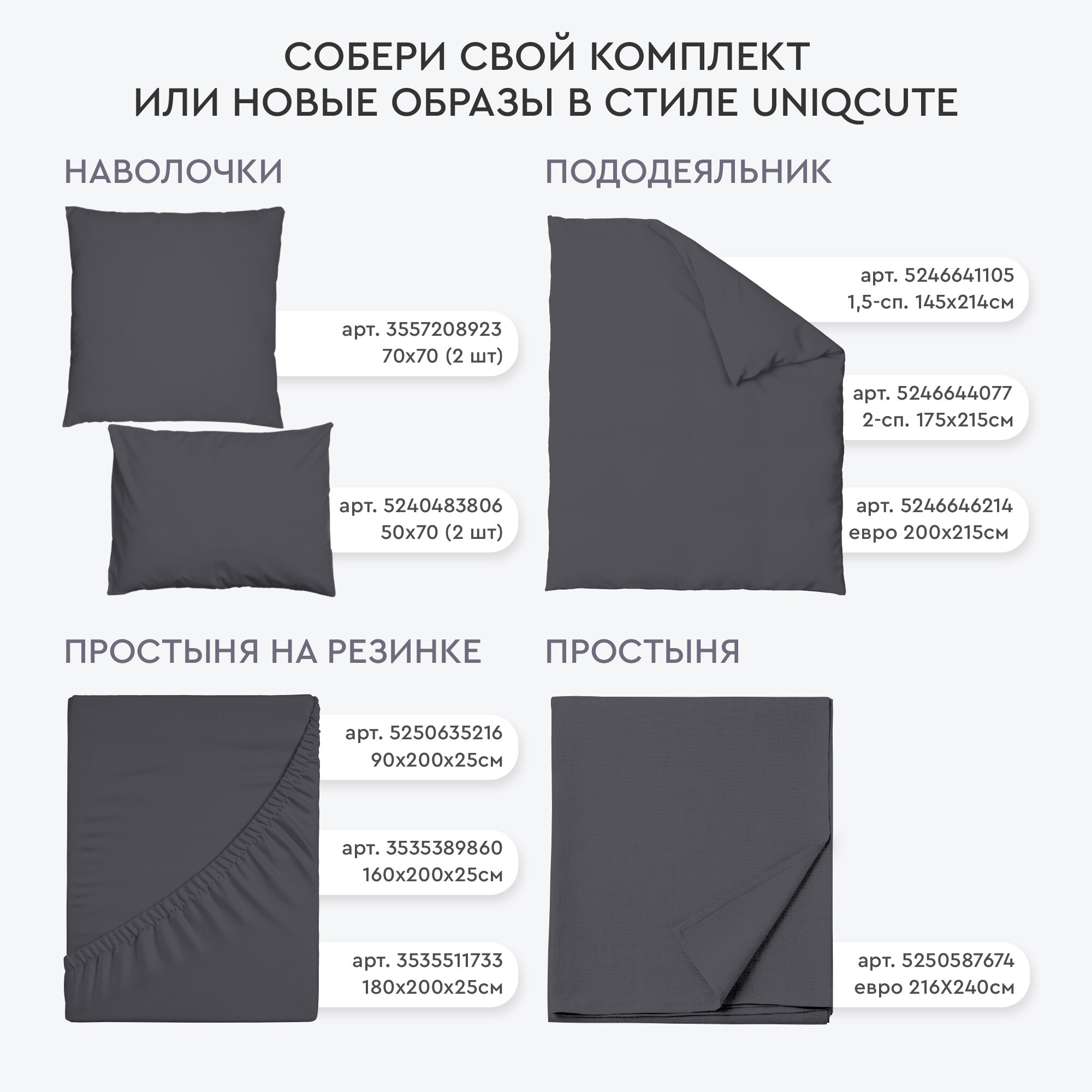 Постельное белье Uniqcute Евро, Поплин, наволочки 50х70 см, SELENITE