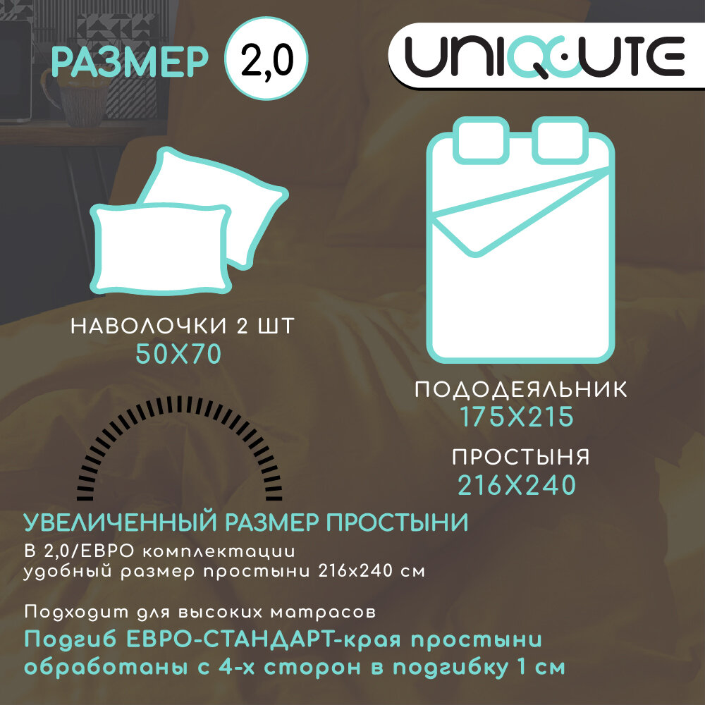 Постельное белье Uniqcute 2-спальное, Поплин, наволочки 50х70 см, MOCCA