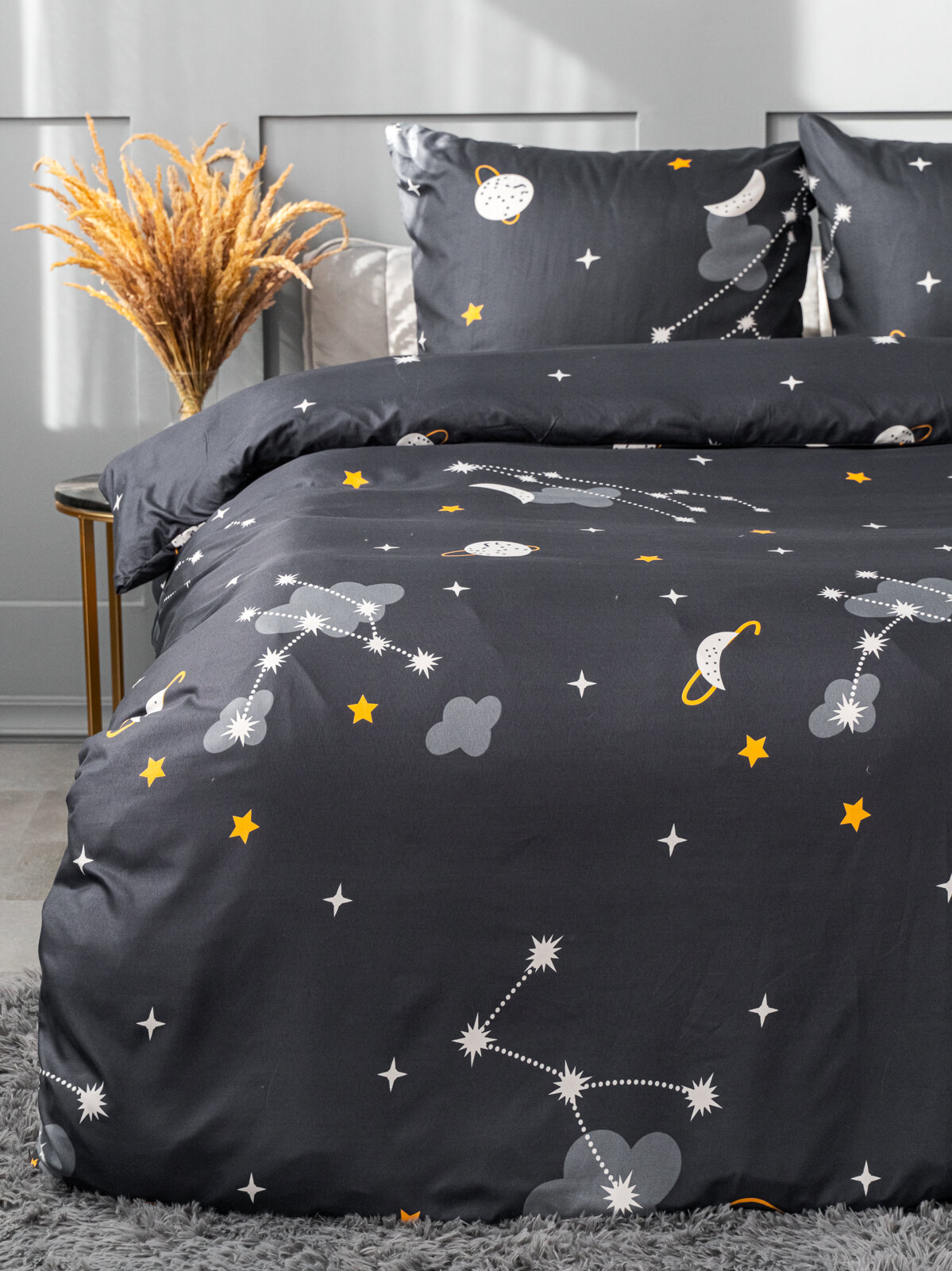 Купить Постельное белье 1.5 спальное Павлина полисатин Звезды рис 9348, черный