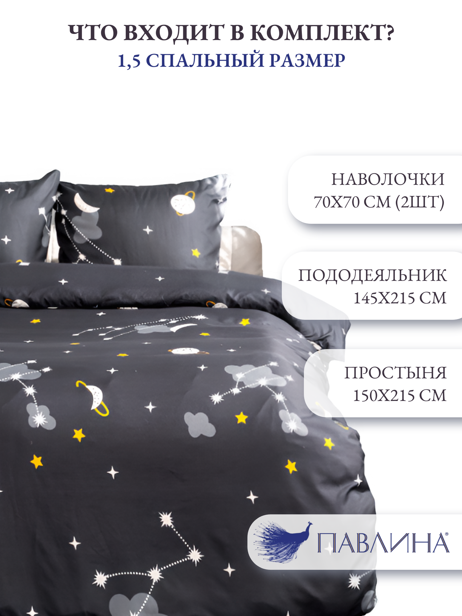 Постельное белье 1.5 спальное Павлина полисатин Звезды рис 9348, черный интересное: