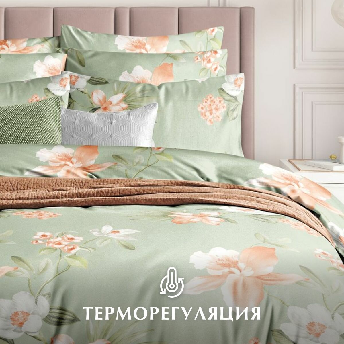 Постельное белье 1.5 спальное, Поплин, Guten Morgen, Виридиан, 100% хлопок