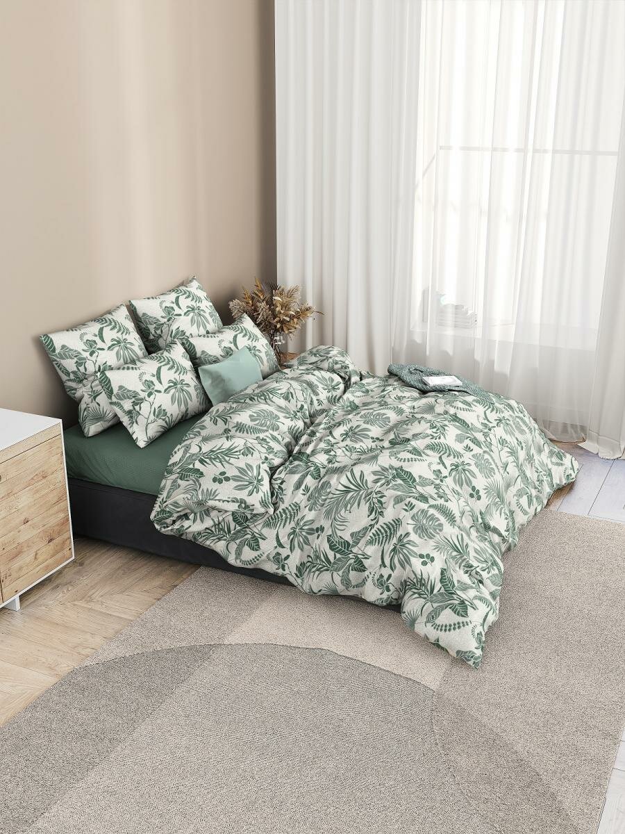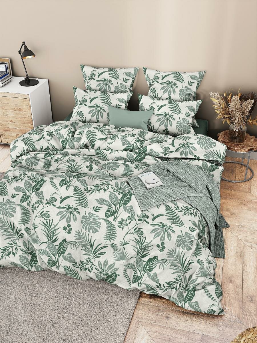Постельное бельё/семейное/комплект/простынь 220х240/пододеяльник 145х215/наволочки 70х70/поплин/Зеленые джунгли/Ночь Нежна