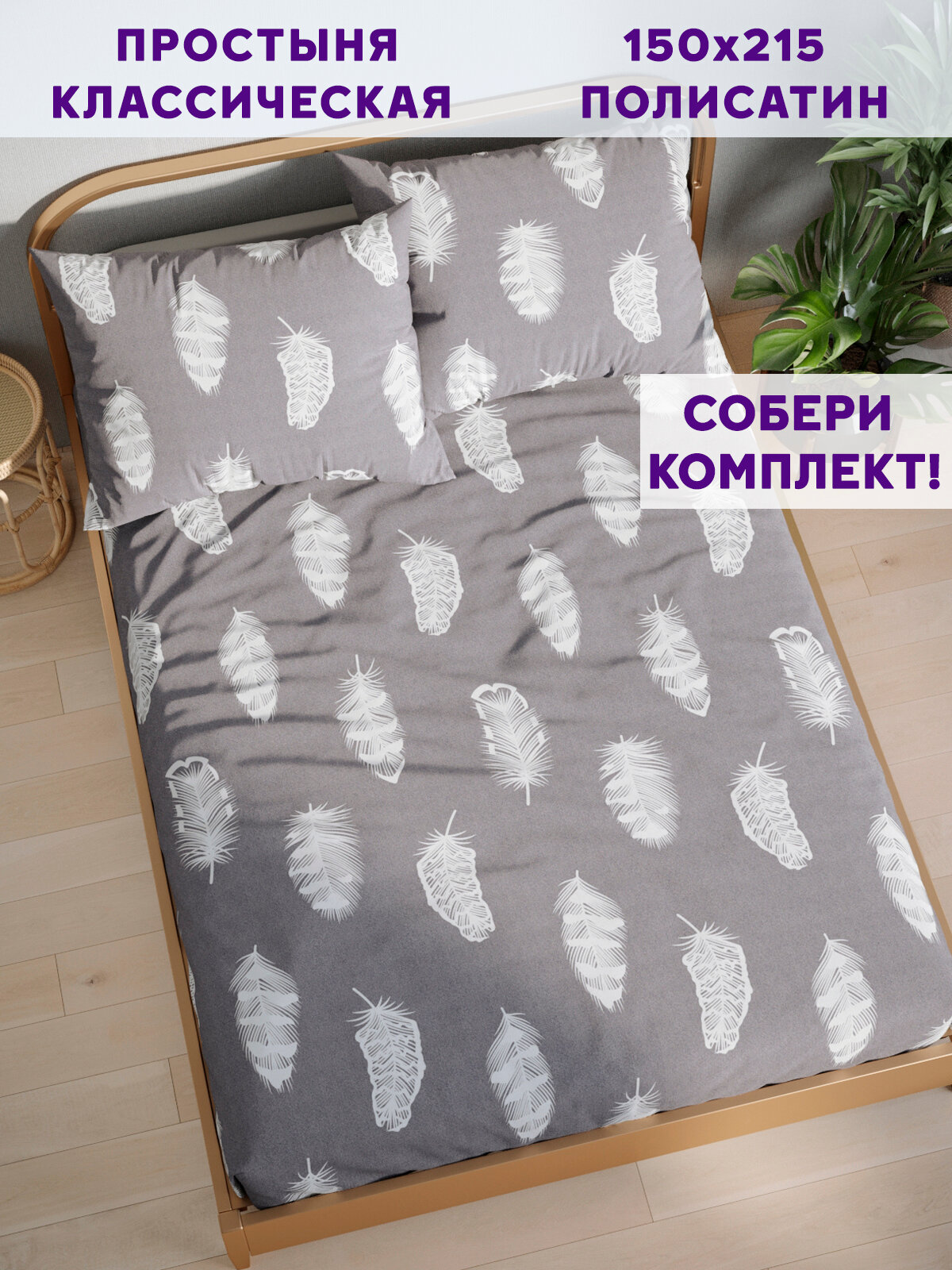 Простынь Simple House "Feather on grey" 150х215 см интересное: