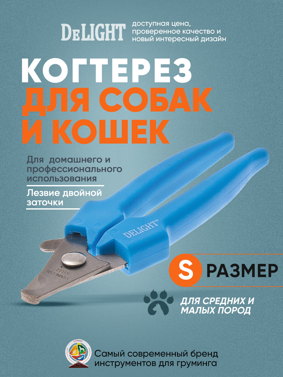 Когтерез-секатор для кошек и собак малых и средних пород DeLIGHT средний (M), в блистере, синий, 40141S