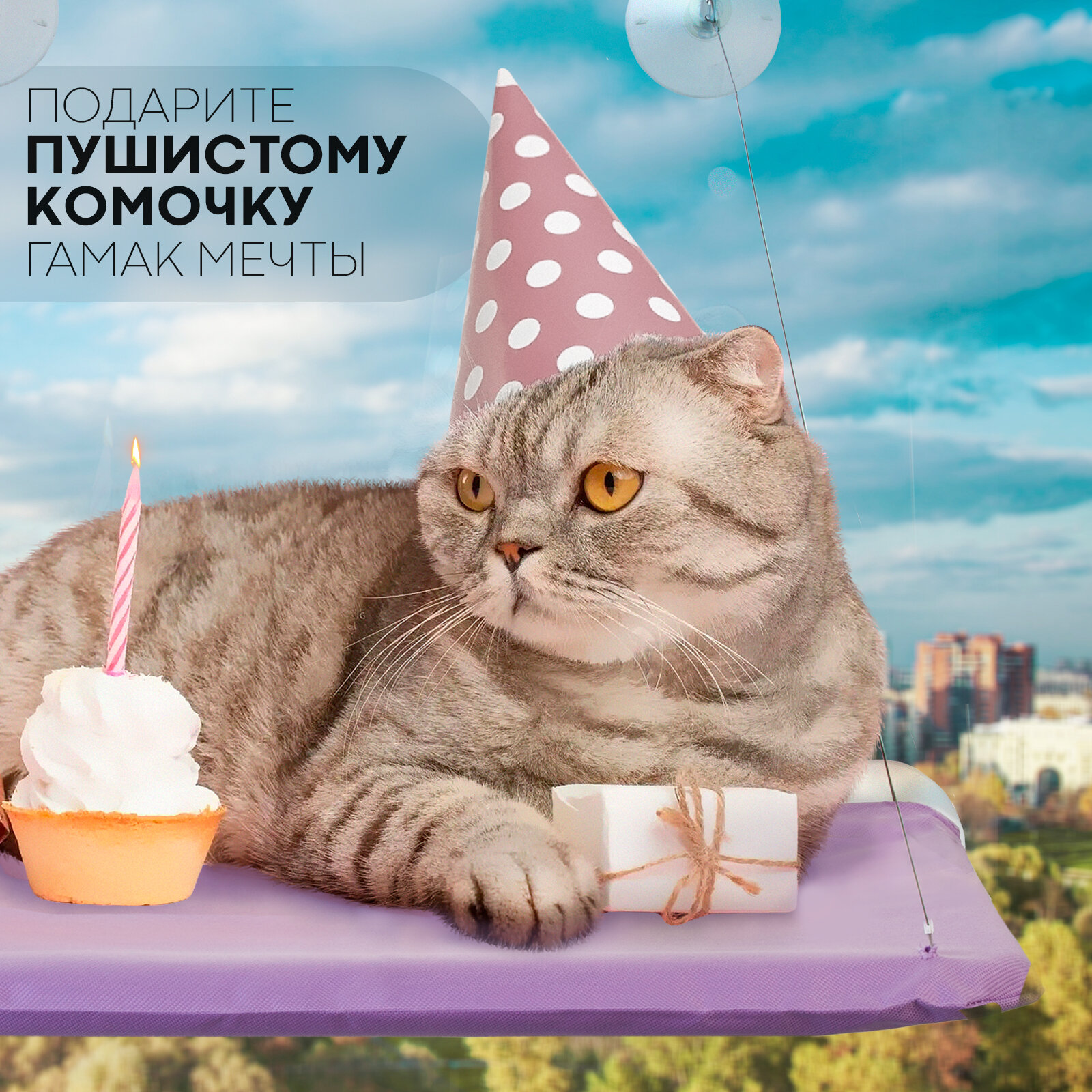 СохранитьНавесной складной гамак полка для котов и кошек на окно, бренд Картофан, фиолетовый интересное:
