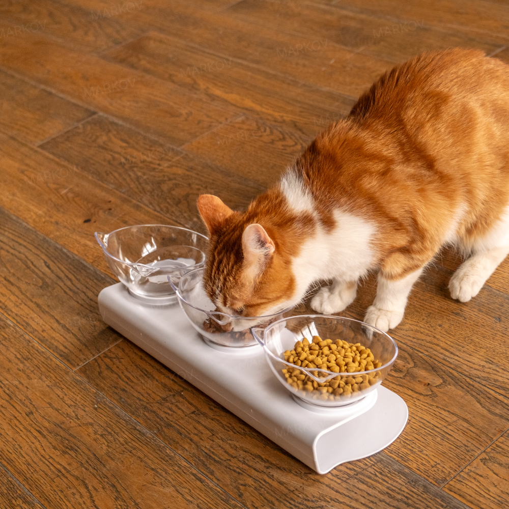 Миска для кошек и собак тройная на подставке с тремя секциями Markov интересное: