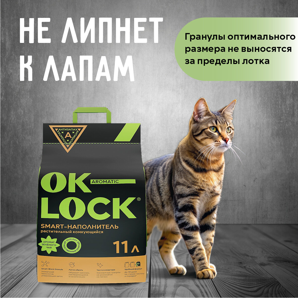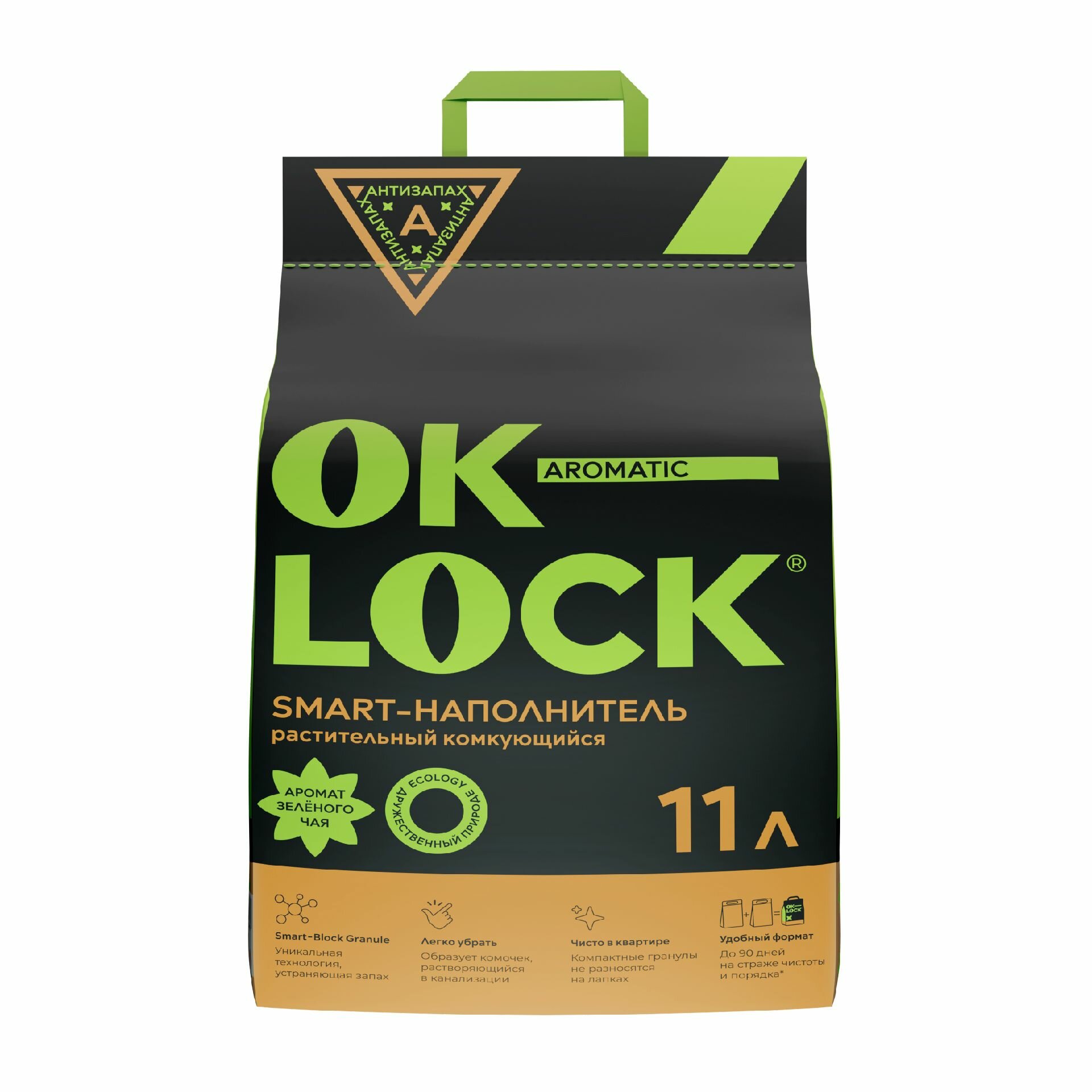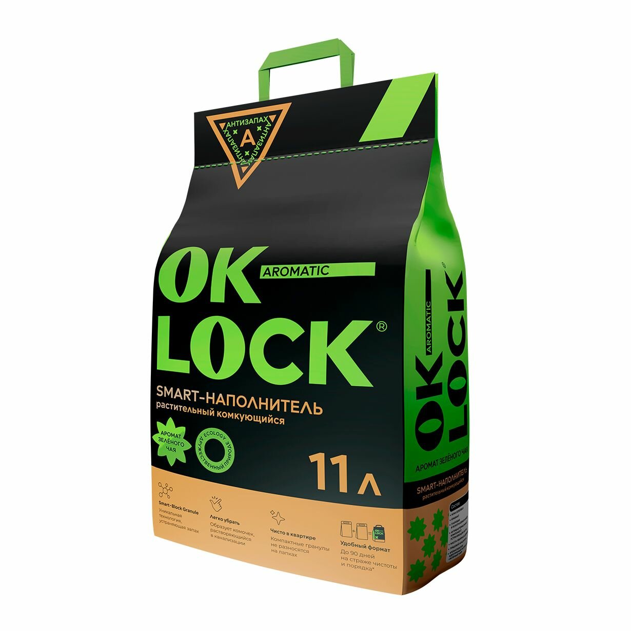 Наполнитель для кошачьего туалета Ok-Lock "зеленый чай", 11л