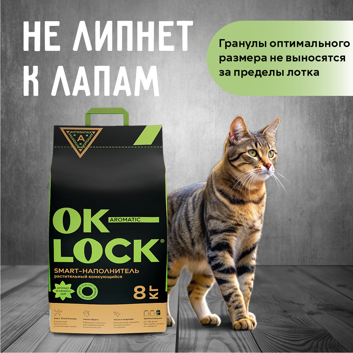 Купить Наполнитель для кошачьего туалета растительный комкующийся Ok-Lock с ароматом зеленого чая, 8 кг 18 л