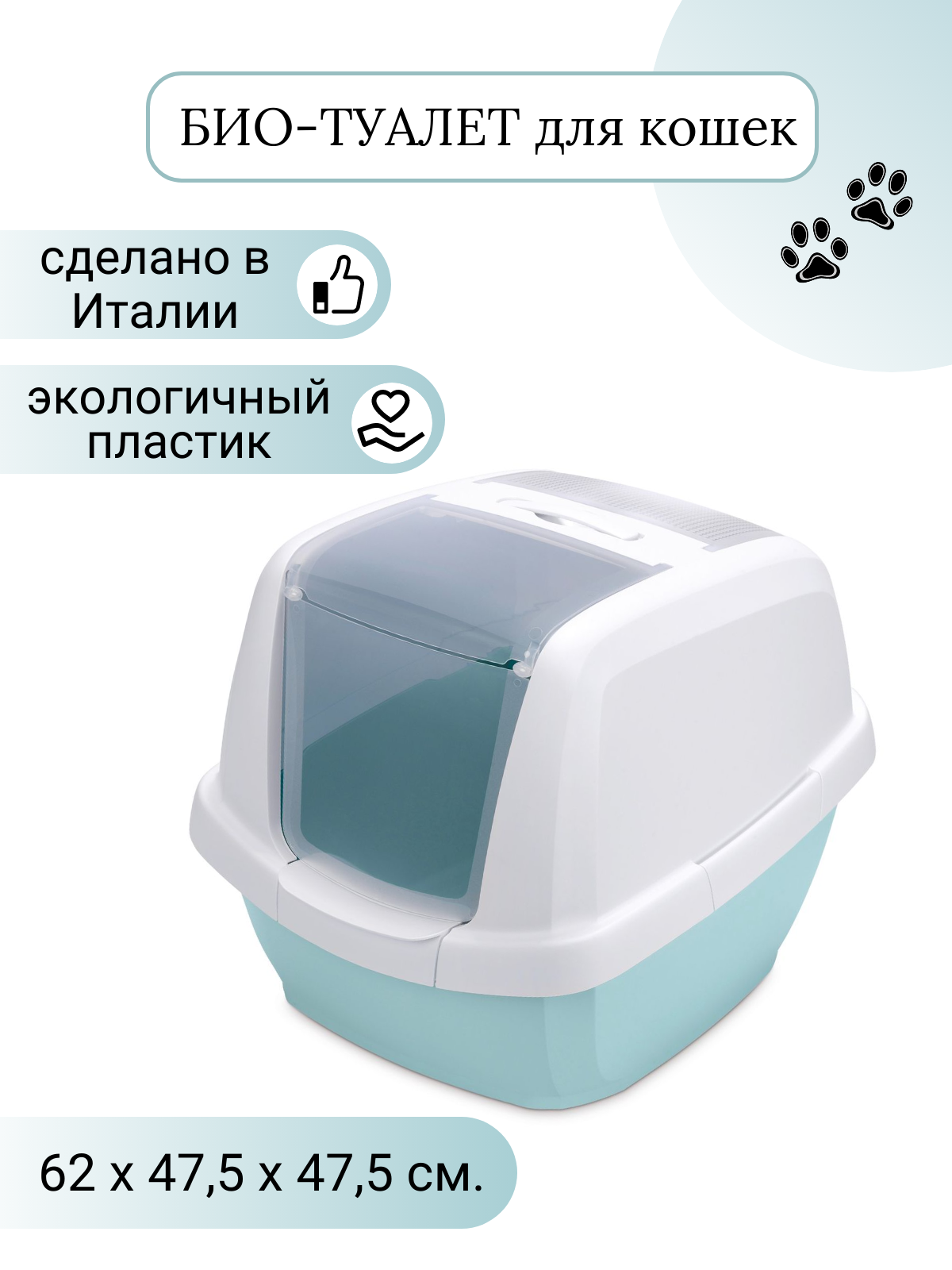 Био-туалет для кошек Imac MADDY, белый/цвет морской волны,62х49,5х47,5 см