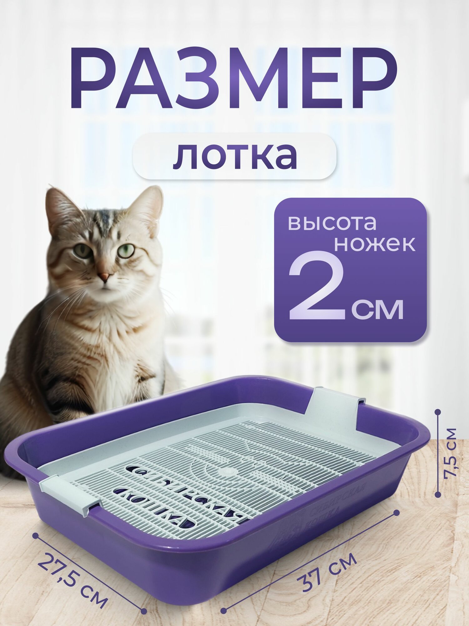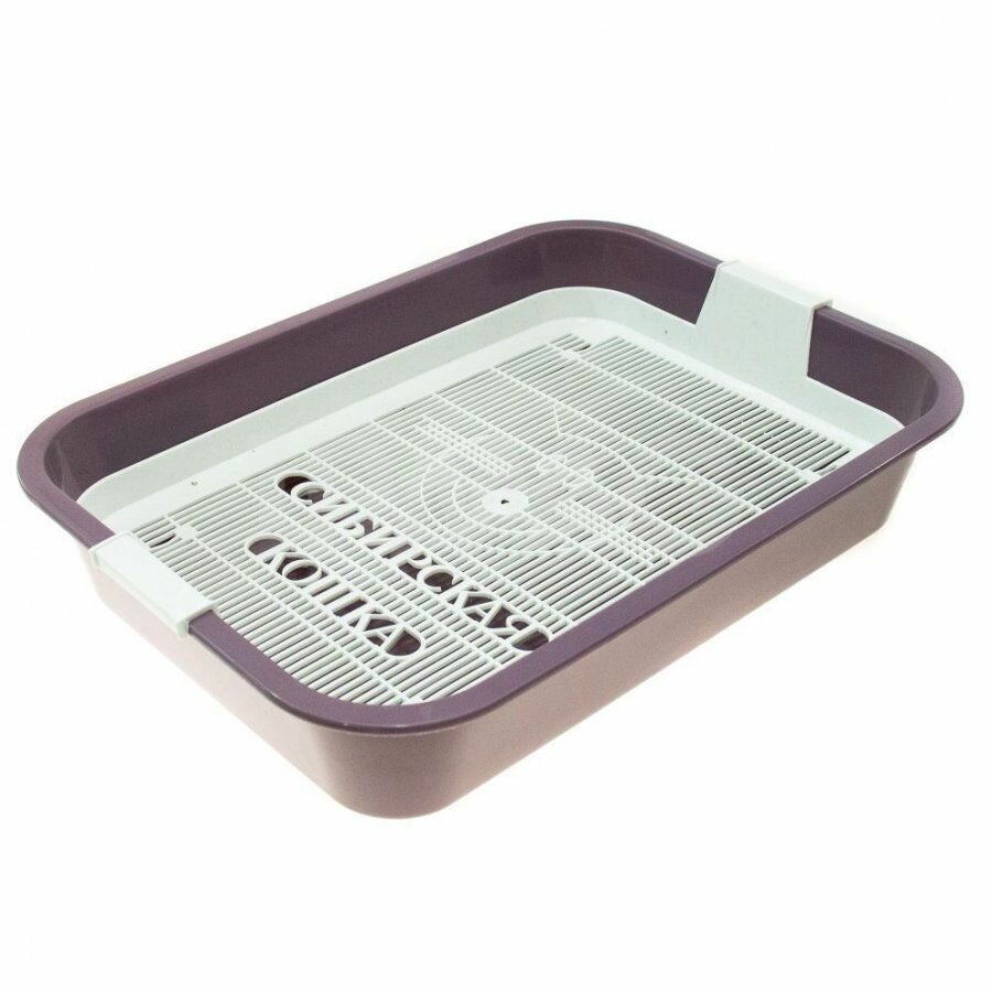 Сибирская кошка Туалет для кошек с сеткой, высокие ножки, фиолетовый, 37,5*27*7,5см