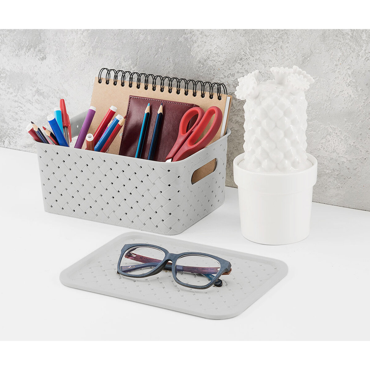 Корзинка, коробка для хранения, с крышкой 4 шт Береста 3 л (2 штуки) и 7,5 л (2 штуки) El Casa, цвет светло-серый, набор интересное: