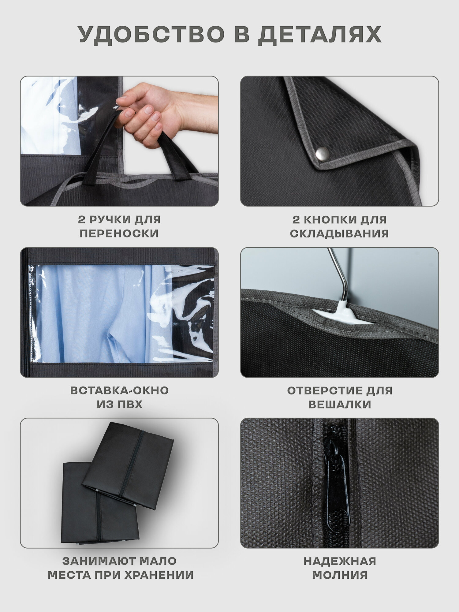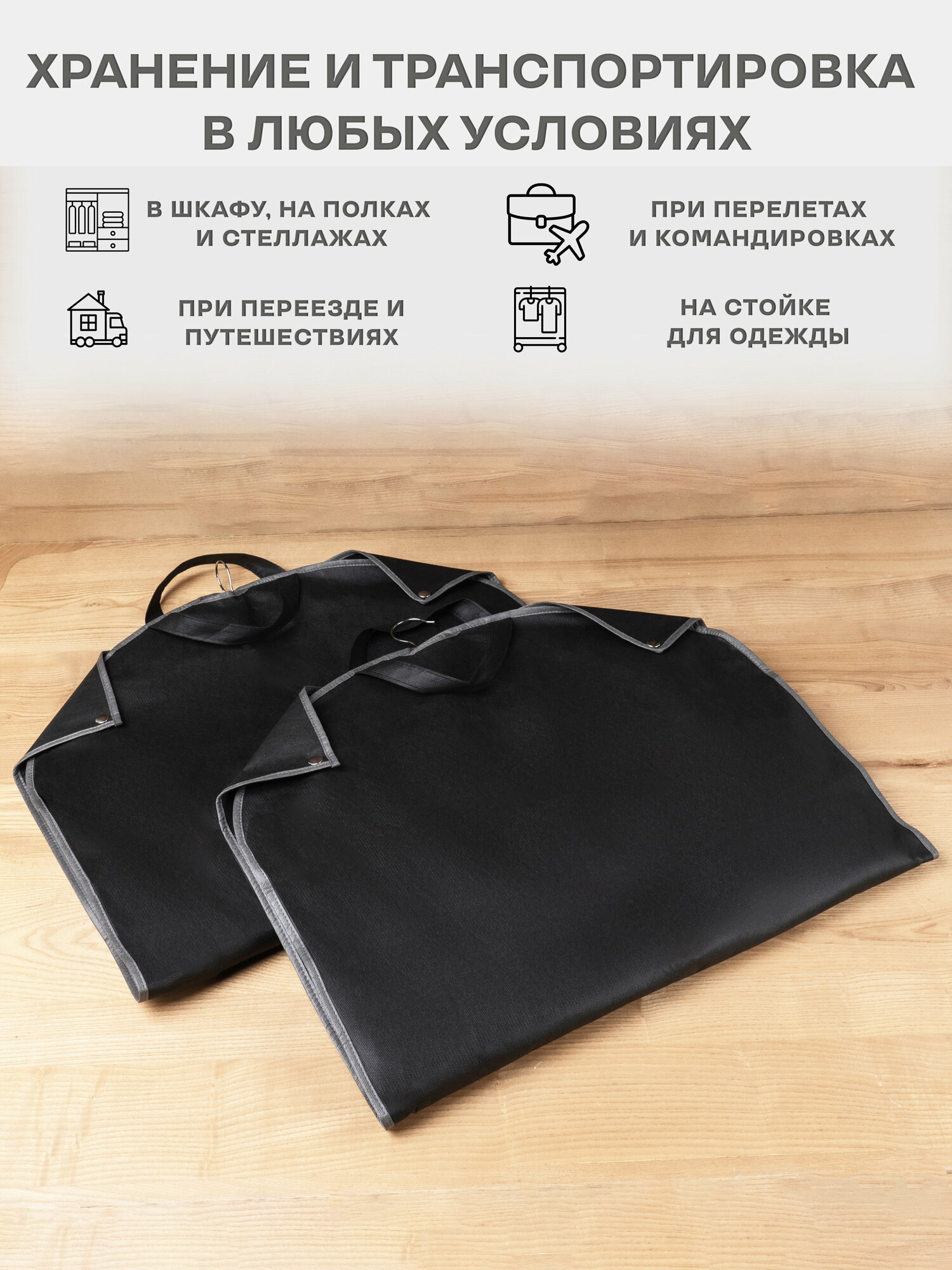 Чехол портплед для хранения одежды 60х100, черный, 2 шт