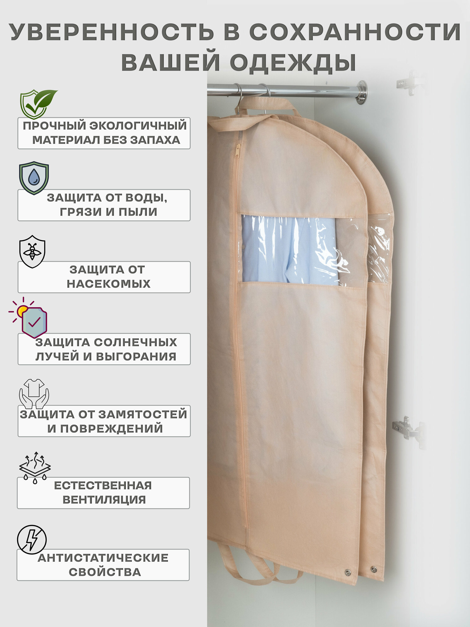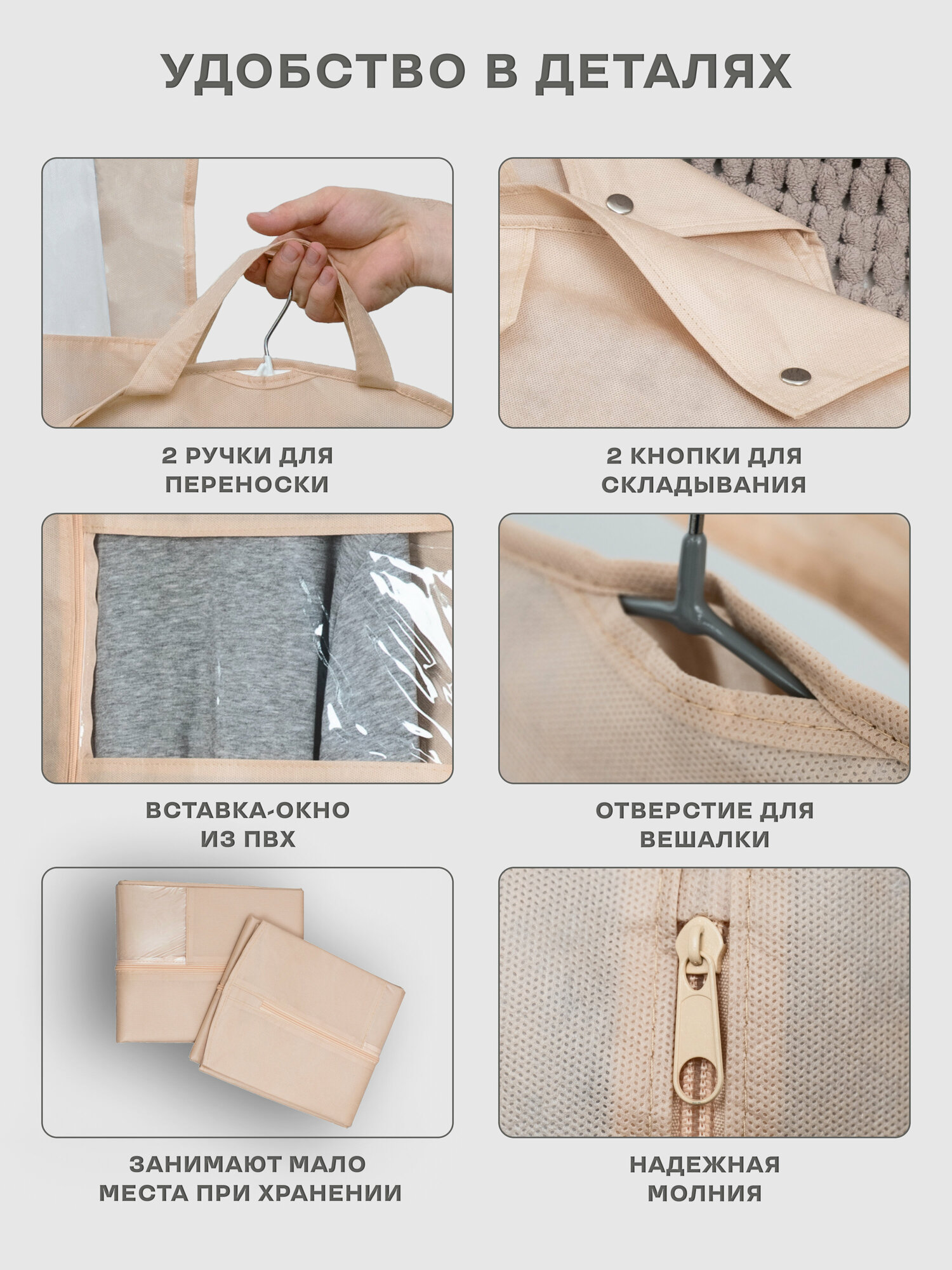 Чехол портплед для хранения одежды 60х100, светло-бежевый, 2 шт