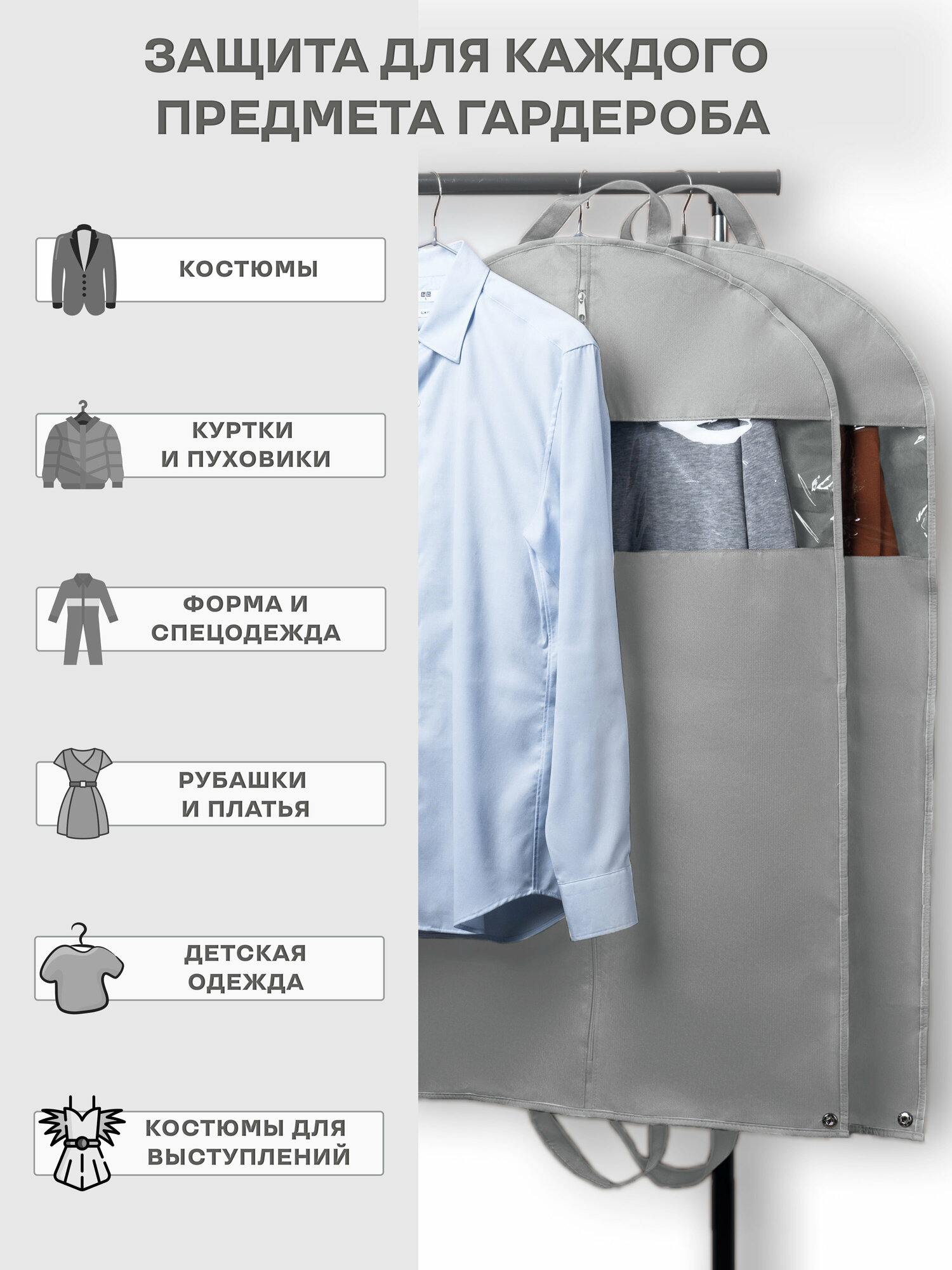 | Комплектация | Чехлы для одежды - 2 шт. |