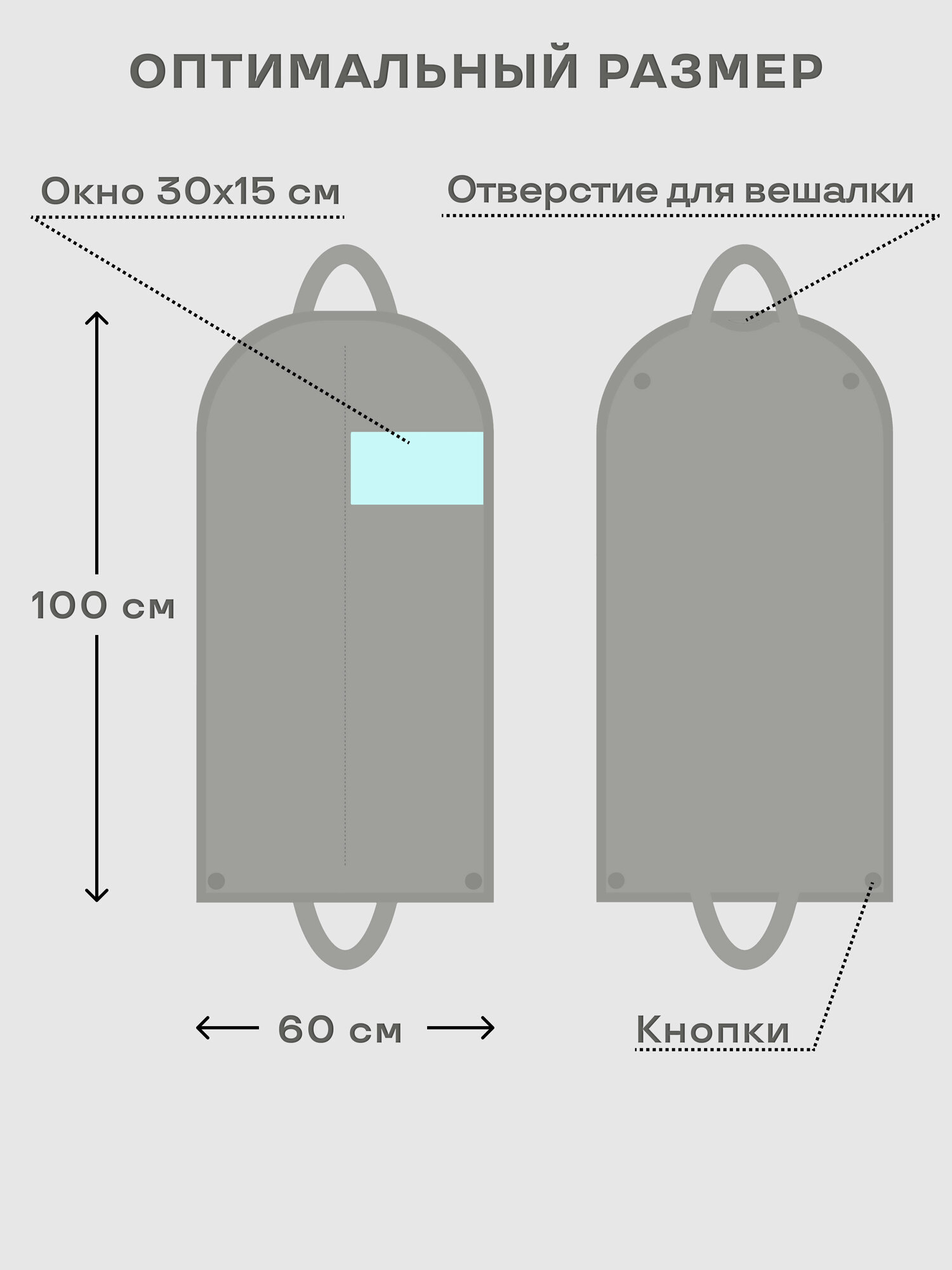 Чехол портплед для хранения одежды 60х100, светло-серый, 2 шт
