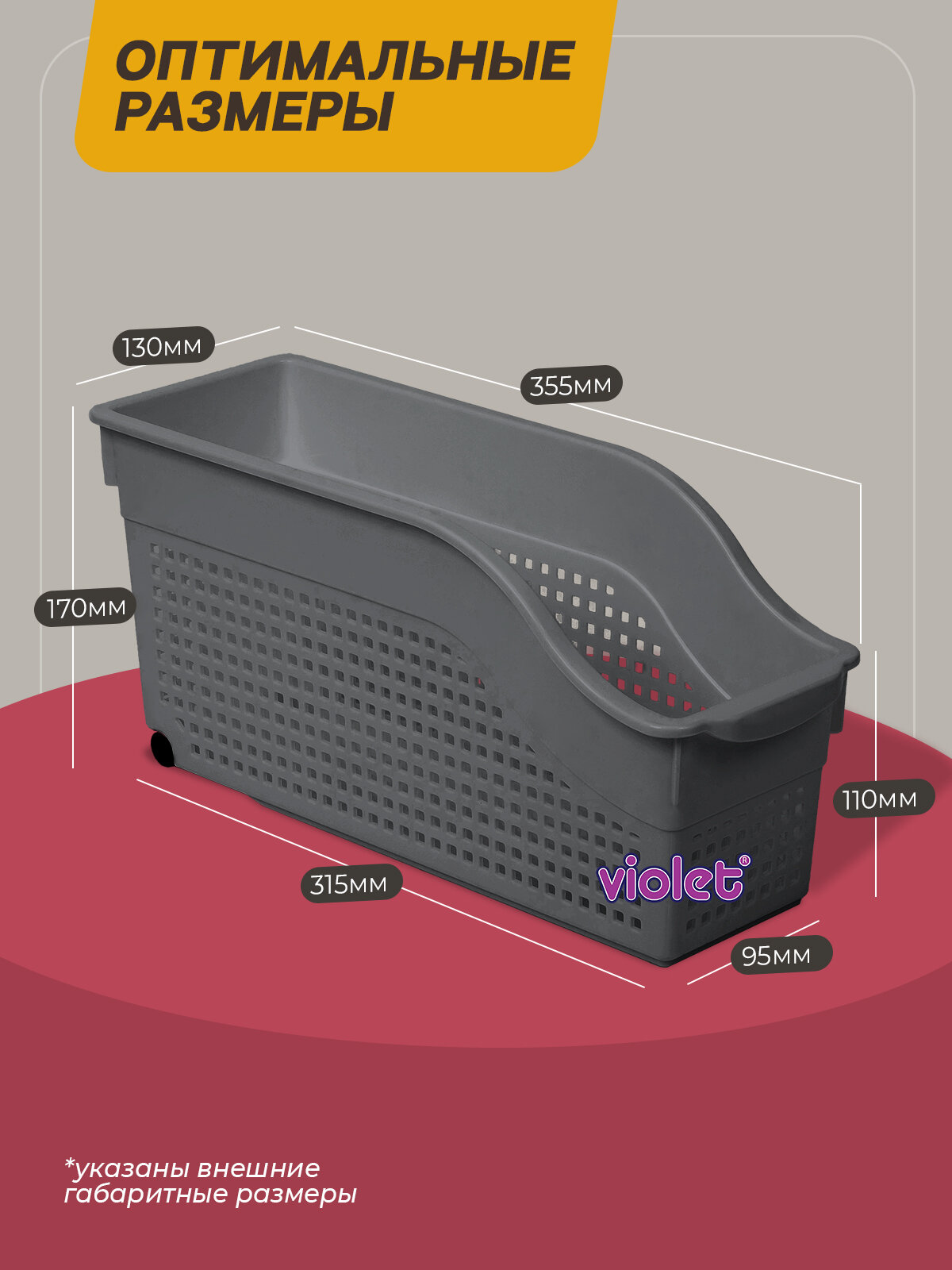 Контейнер лофт латте 355х130х170мм на колесах узкий
