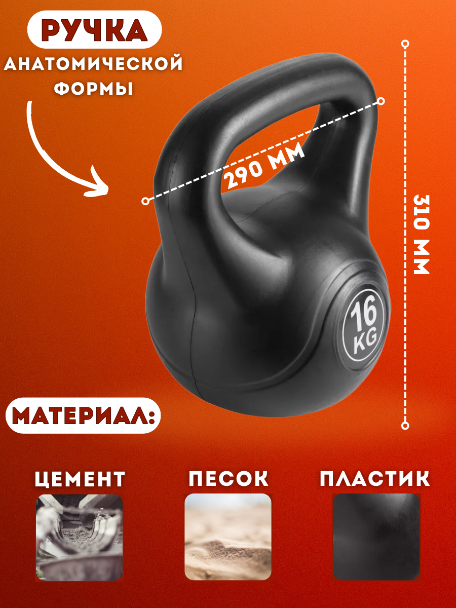 Гиря пластиковая SPORTLIM 16 кг (Черная) интересное: