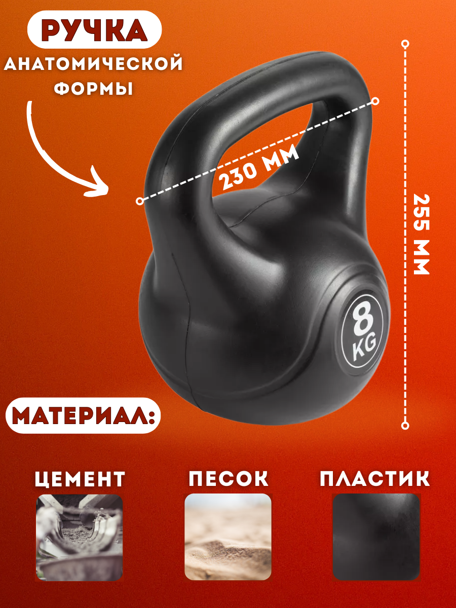 Гиря пластиковая SPORTLIM 8 кг (Черная) интересное: