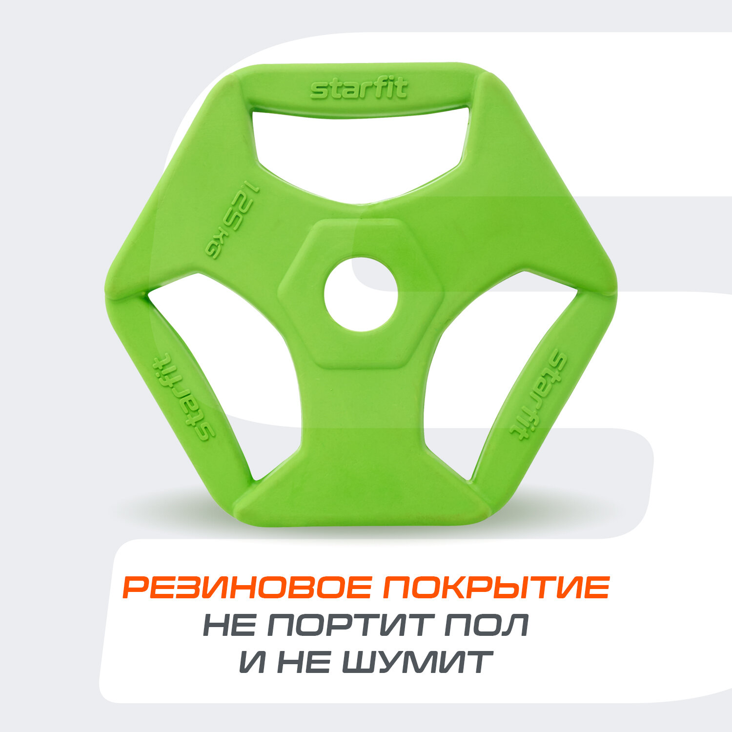Купить Диск обрезиненный с хватами STARFIT BB-205 1,25 кг, d=26 мм, зеленый, 2 шт