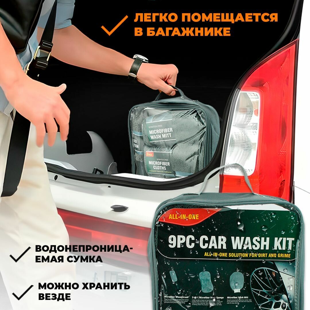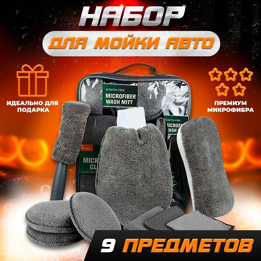 Дорожный подарочный набор автомобилиста для мойки и уборки машины 9 предметов, комплект для самомойки интересное: