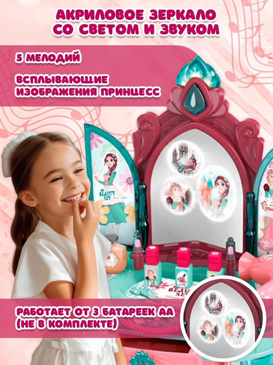 Туалетный столик детский WiMi, салон красоты для девочек, детская парикмахерская с феном, трюмо с зеркалом со светозвуковыми эффектами