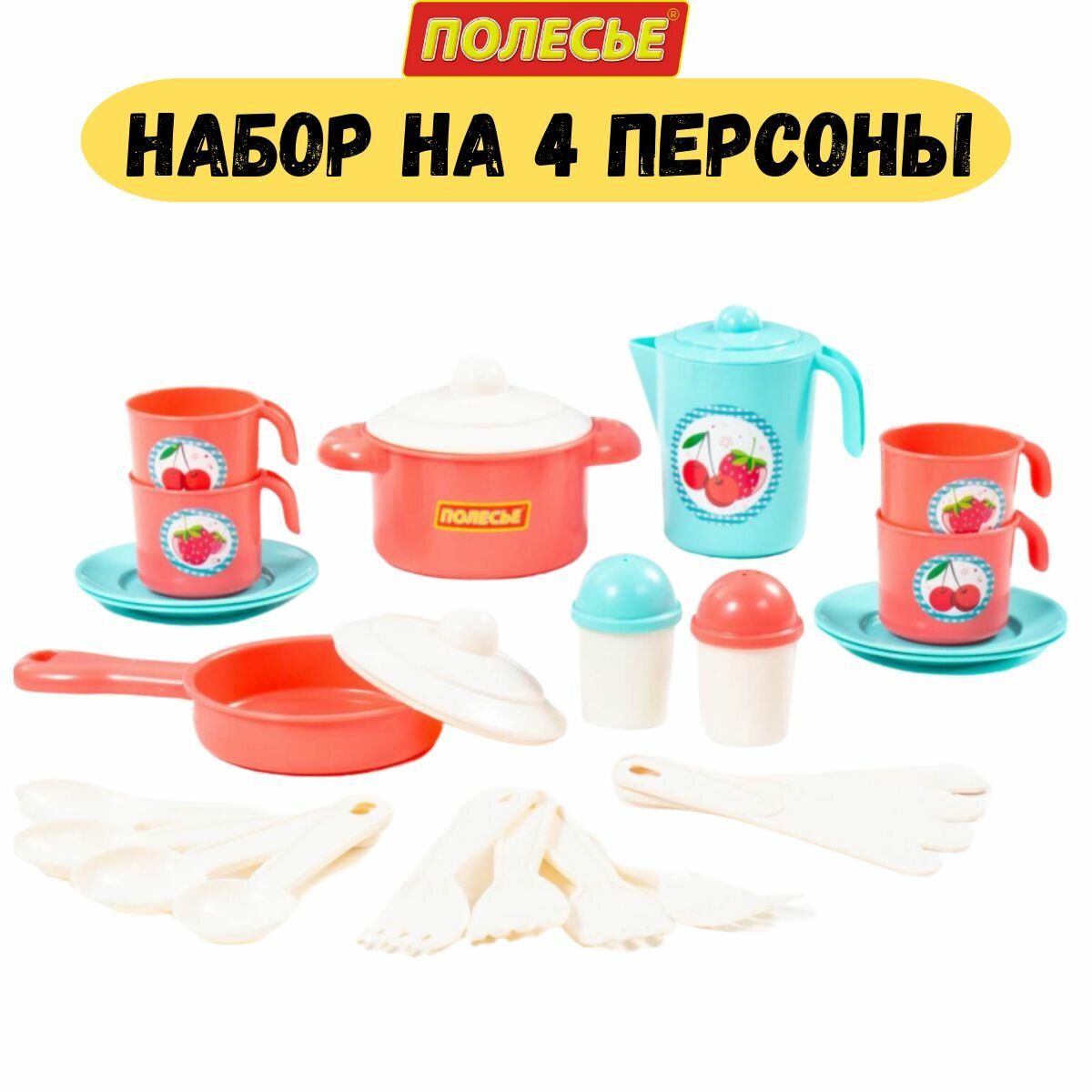 Купить Полесье Набор детской посуды Настенька на 4 персоны (V3) 28 предмет 79930 с 3 лет