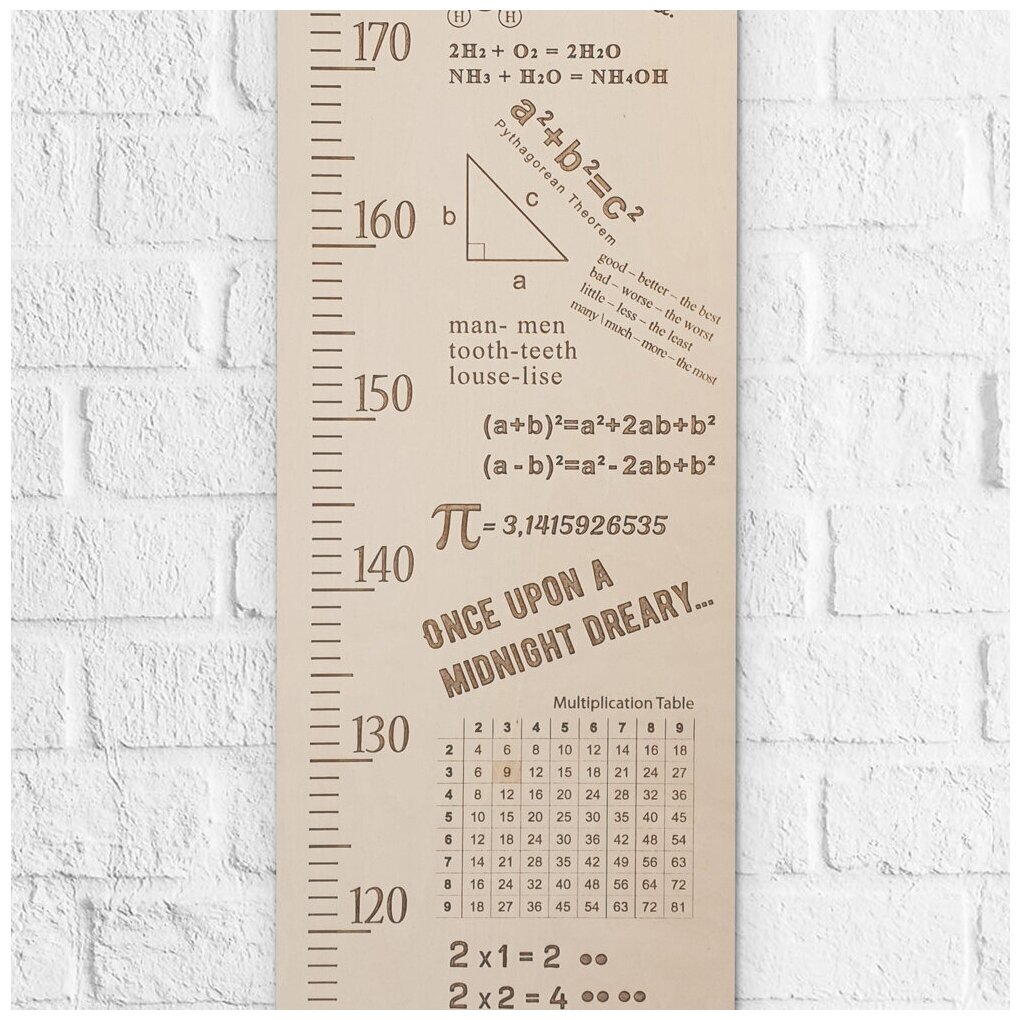 Ростомер Woodenking обучающий английский язык 2м. Ростовая линейка из дерева на стену. интересное: