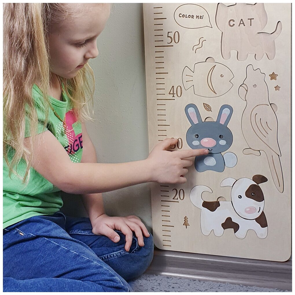 Купить Ростомер Woodenking обучающий английский язык 2м. Ростовая линейка из дерева на стену.