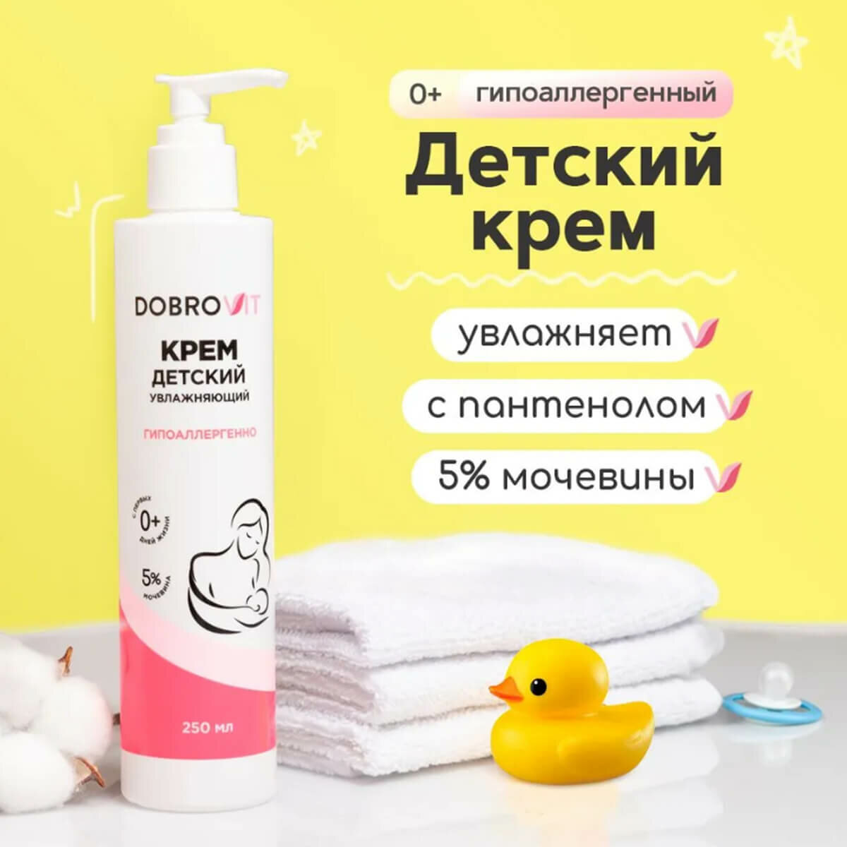 DOBROVIT Детский крем для лица и тела увлажняющий, для новорожденных, питательный, 250 мл интересное: