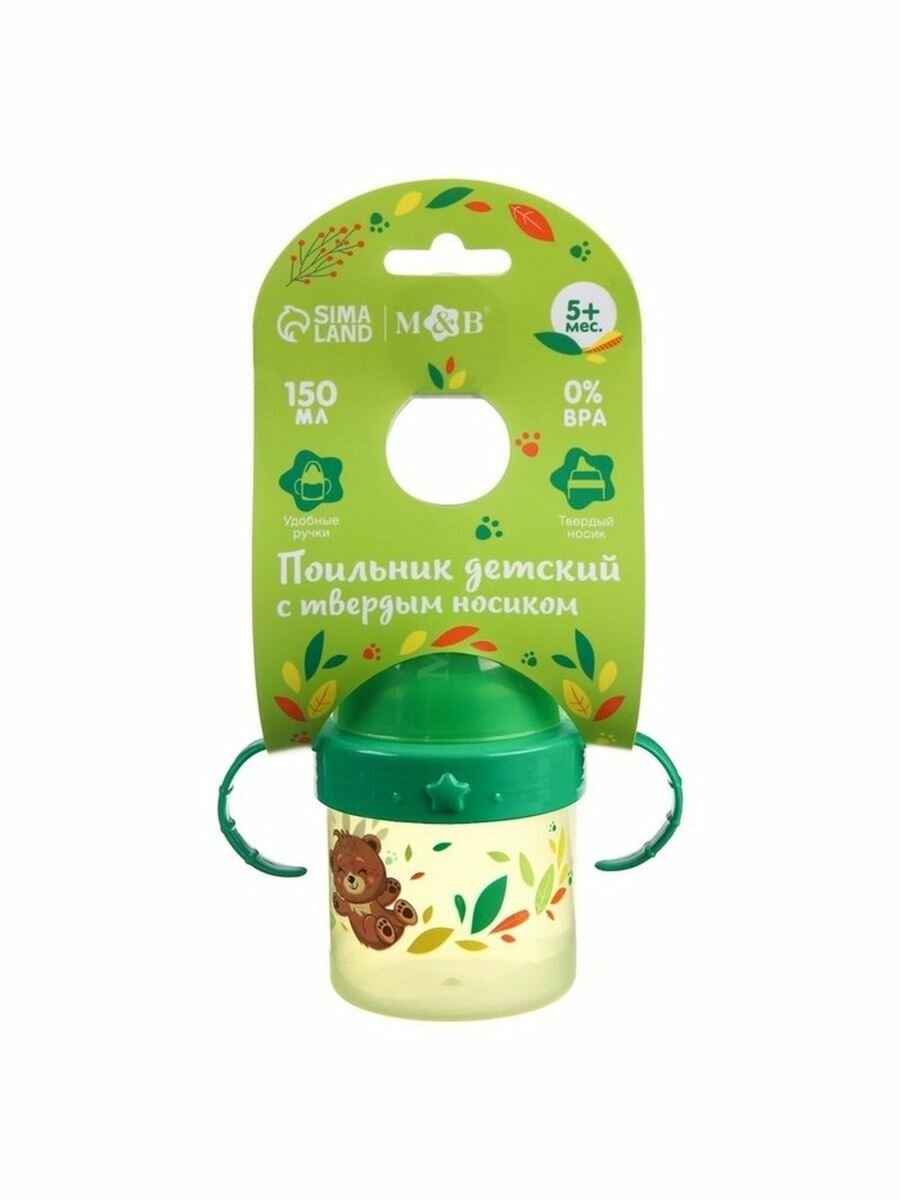 Поильник детский с твёрдым носиком «Мишутка. Мамы и малыши», с ручками, 150 мл, цвет зеленый, 4882559