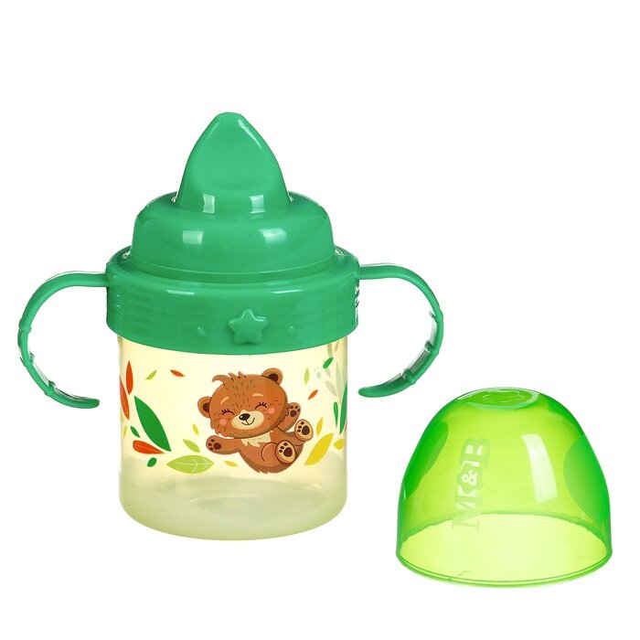 Поильник детский с твёрдым носиком "Мишутка. Мамы и малыши", 140 мл, с ручками, цвет зеленый интересное: