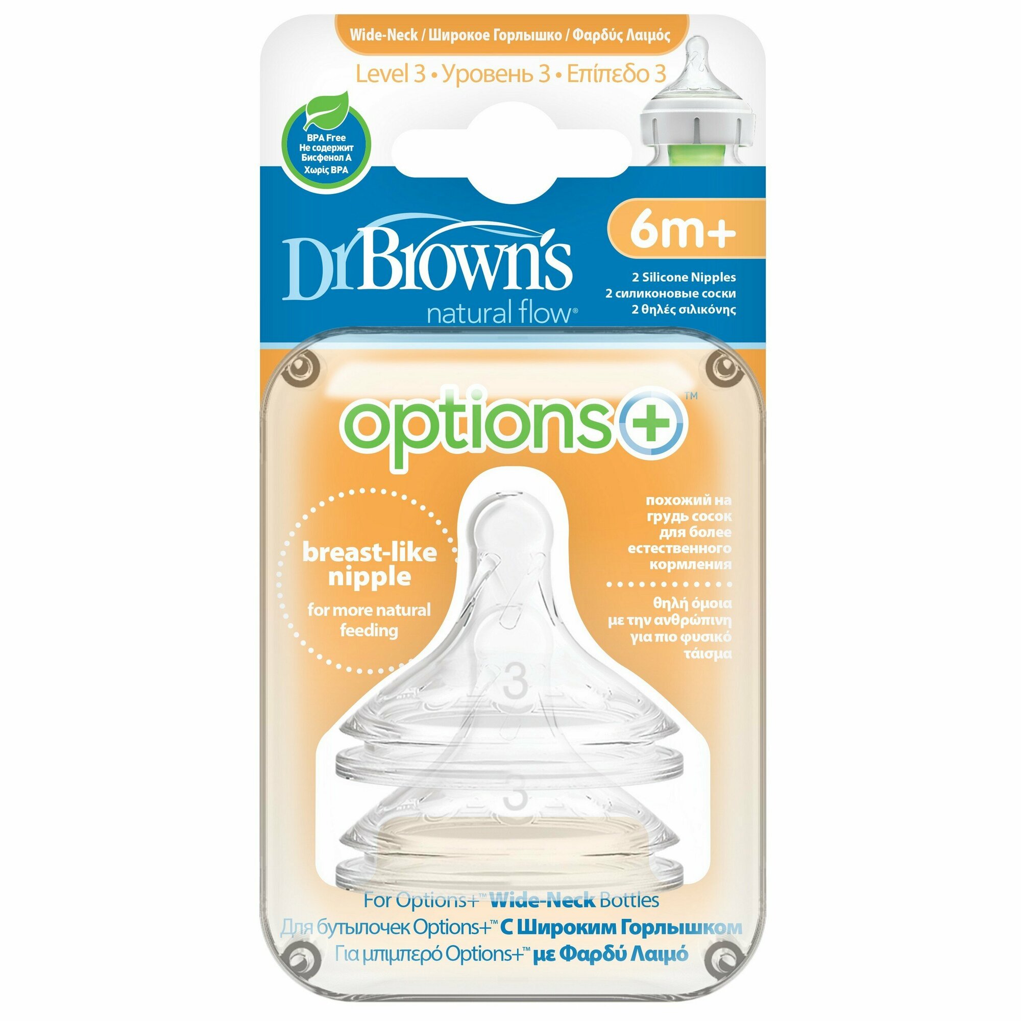 Соска силиконовая DR. Brown's к бутылочкам Options+, 3-й Уровень, от 6 месяцев, 2 шт