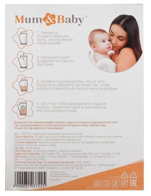 Пакеты для хранения и заморозки грудного молока, 200 мл, набор 15 шт. интересное: