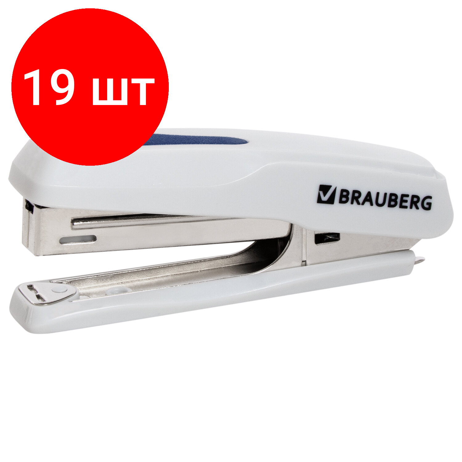 Купить Комплект 19 шт, Степлер №10 BRAUBERG "Extra", до 20 листов, антистеплер, серо-синий, 229081