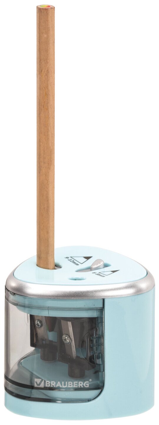 Точилка электрическая (электроточилка) для карандашей с контейнером для стружки Brauberg Dual (для 2 диаметров карандашей!), голубая