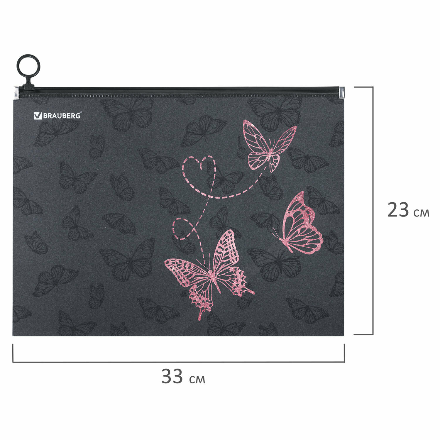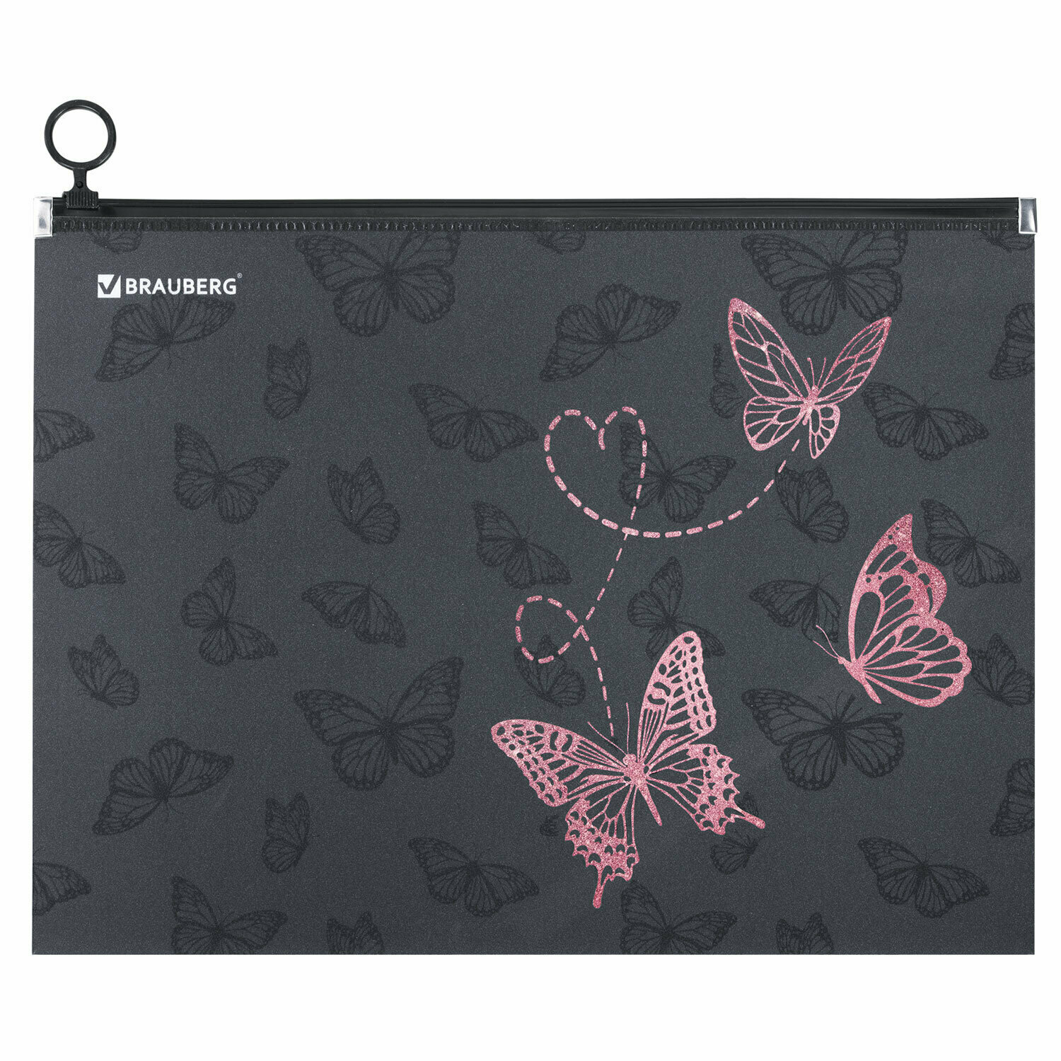 Купить Папка для тетрадей Brauberg А4, 1 отделение, пластик, на zip-lock-молнии, "Neon butterflies", 272103