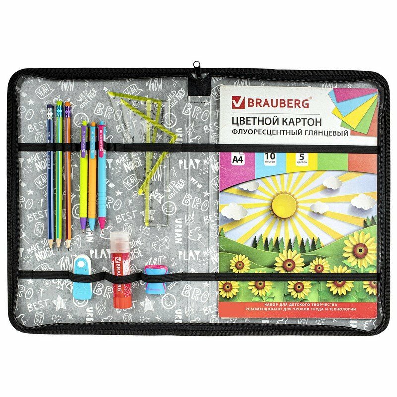 Папка для уроков труда и школы для школьника на молнии Brauberg А4 с ручкой, 1 отделение, органайзер, Husky, 271450