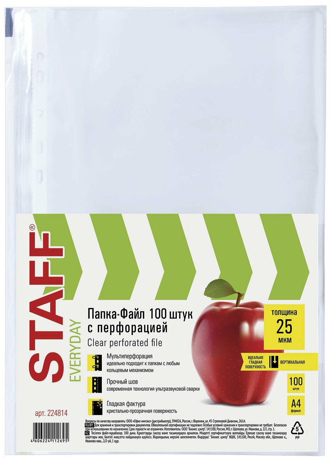 Папки-файлы перфорированные А4 STAFF "эконом", комплект 100 шт., гладкие, 35 мкм, 226830 интересное: