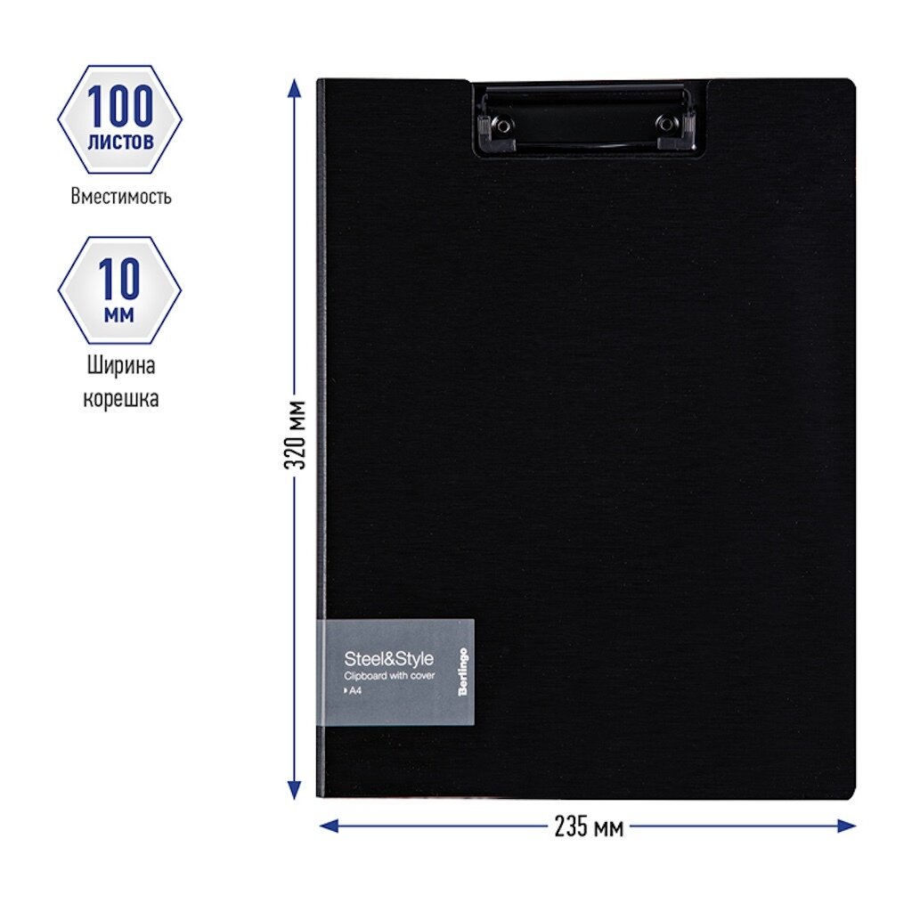 Купить Папка-планшет А4 с зажимом Berlingo "Steel&Style", пластик, черная