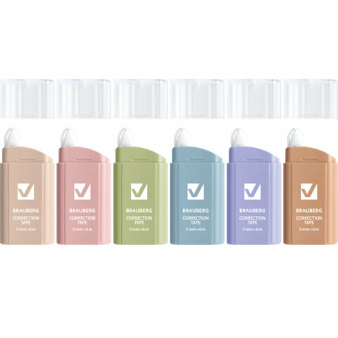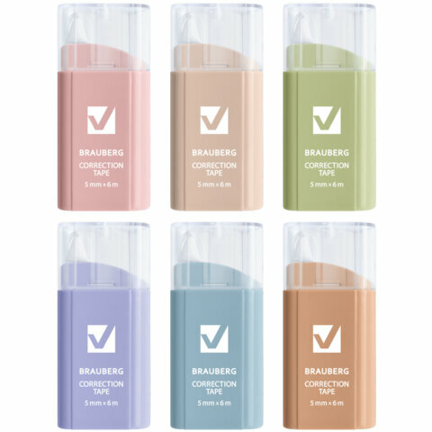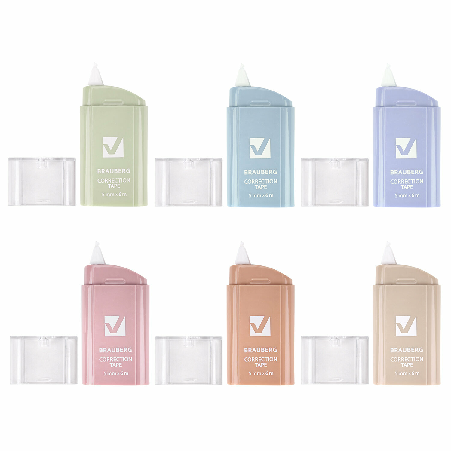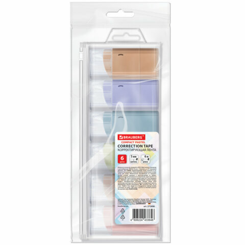 Купить Замазка ленточная канцелярская для школы, набор 6 шт, корректирующая лента, штрих корректор 5мм x 6м, пенал zip-lock, Brauberg Compact Pastel, 272496
